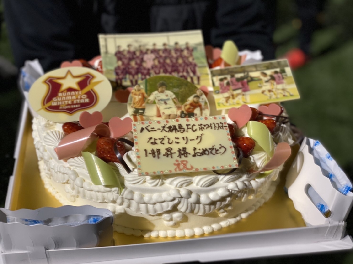 なでしこリーグ1部昇格内定祝いの大きなケーキ