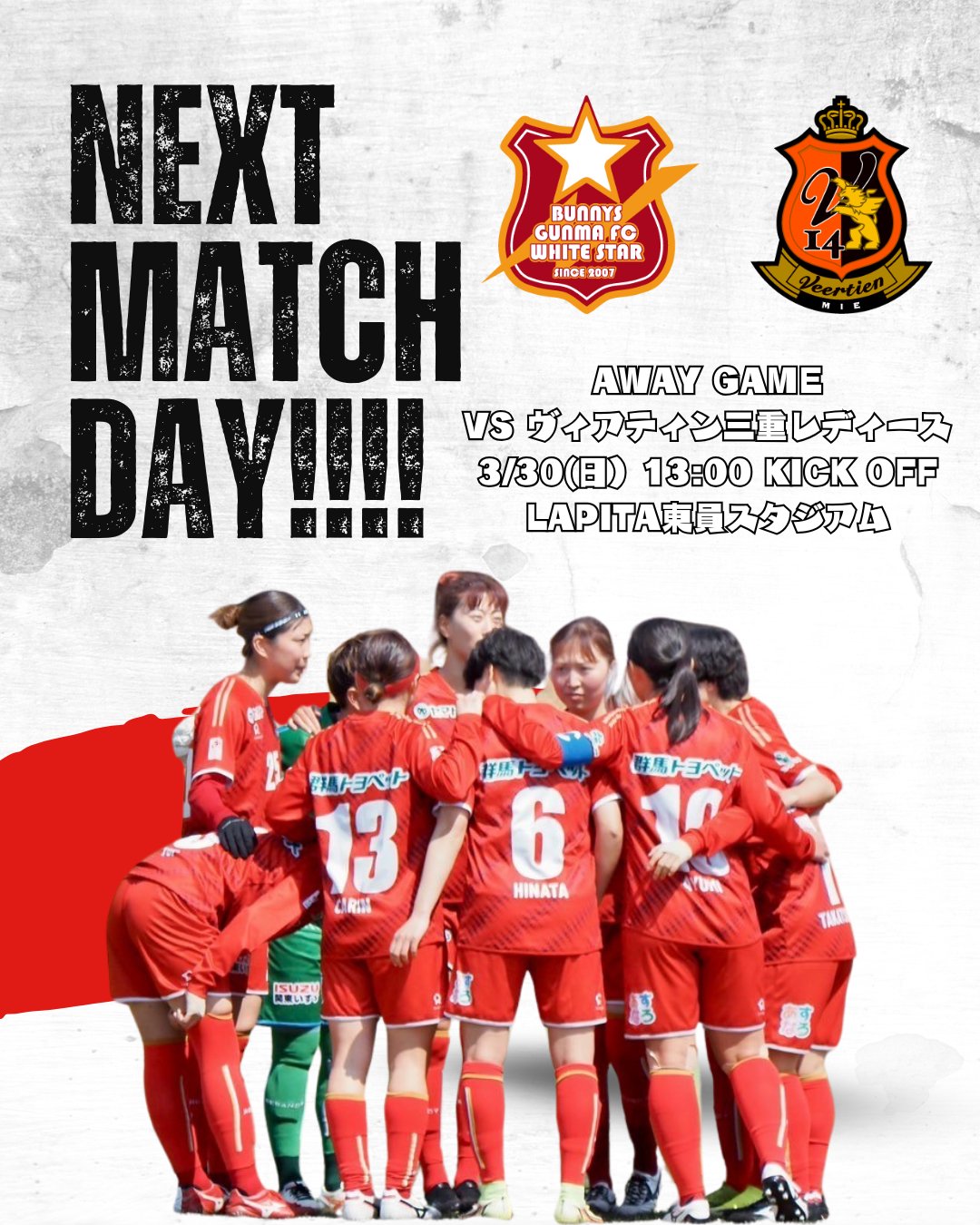 3月30日に開催します2025プレナスなでしこリーグ2部 第3節 ヴィアティン三重レディース戦についてお知らせします。3/30 13:00 kick off