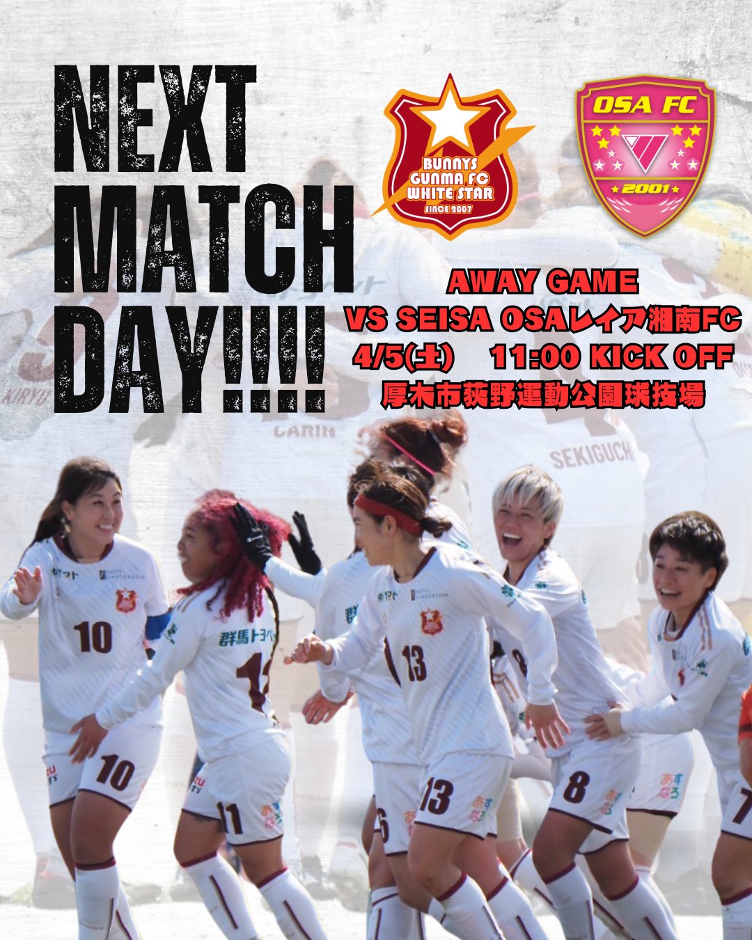 4月5日に開催します2025プレナスなでしこリーグ2部 第4節 OSAレイア湘南FC戦についてお知らせします。4/5(土) 11:00kick off