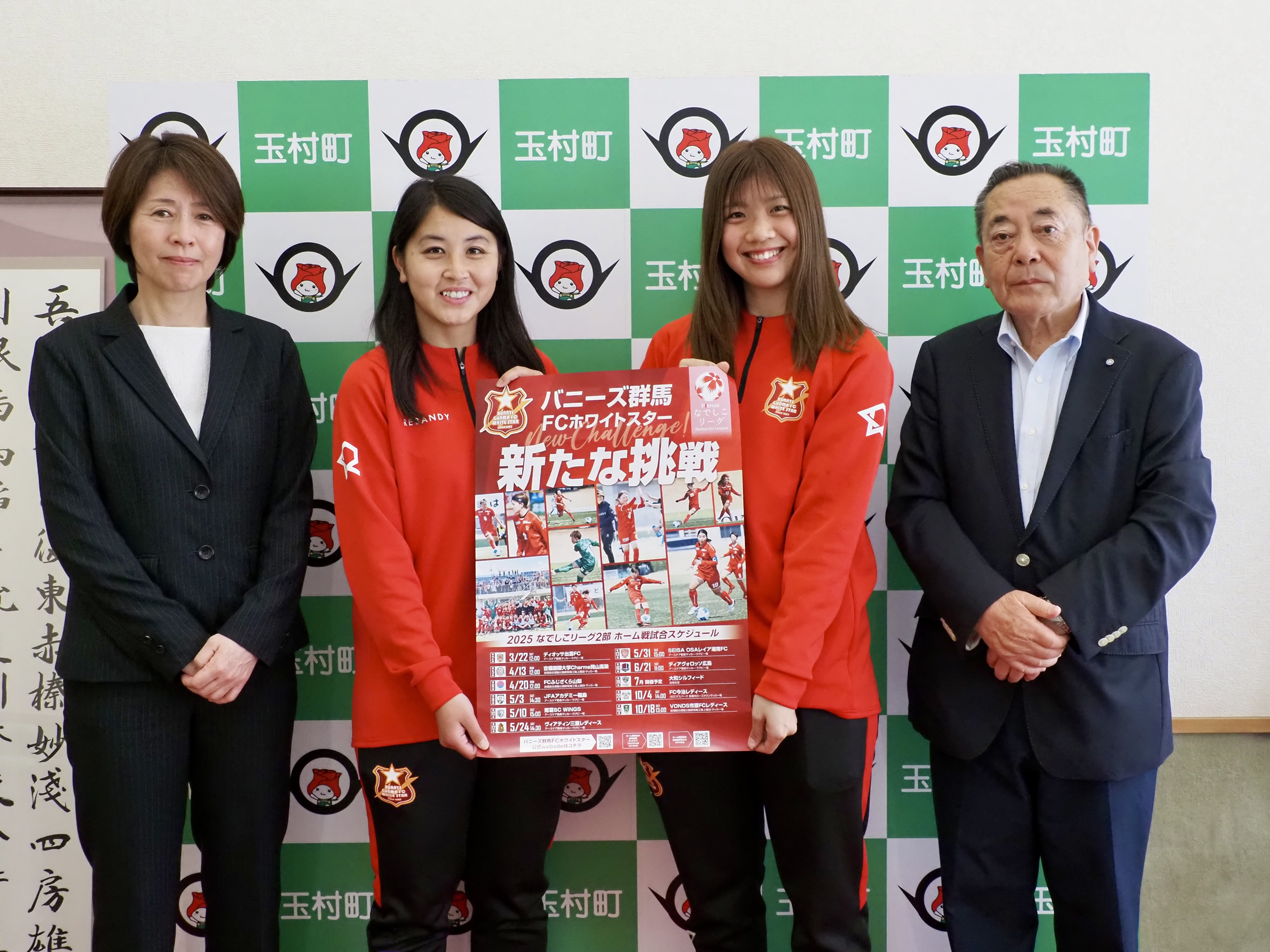 いつも練習場でお世話になっている玉村町の石川 眞男 町長へ野田監督、大矢キャプテン、三秋選手がチームを代表して表敬訪問しました。